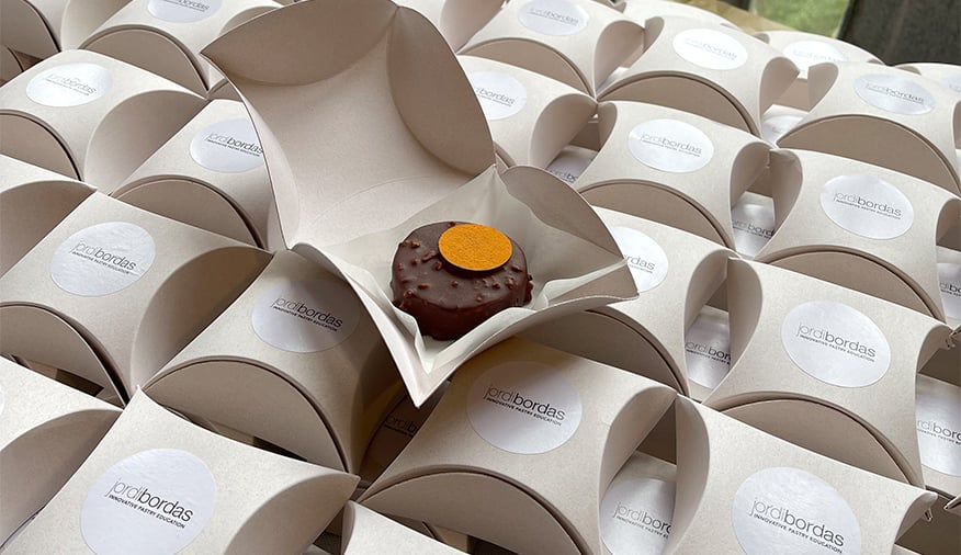 Los ingredientes principales utilizados para esta receta fueron la avellana, la mandarina y el chocolate, todos productos de proximidad que preservan la pureza de su sabor y son beneficiosos para el organismo. Además, se utilizó un 10% de mantequilla Be Better, hecha a base de plantas con el equilibrio exacto de componentes necesarios para ofrecer un producto estable. Esta mantequilla recién sacada al mercado ofrece a los chefs la misma calidad y facilidad de trabajo que la de origen animal, pero sin culpa.