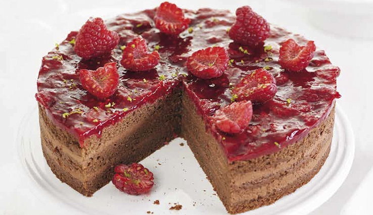 Cortar la frambuesa fresca a dados y calentar junto con el puré de frambuesa a 40ºC.