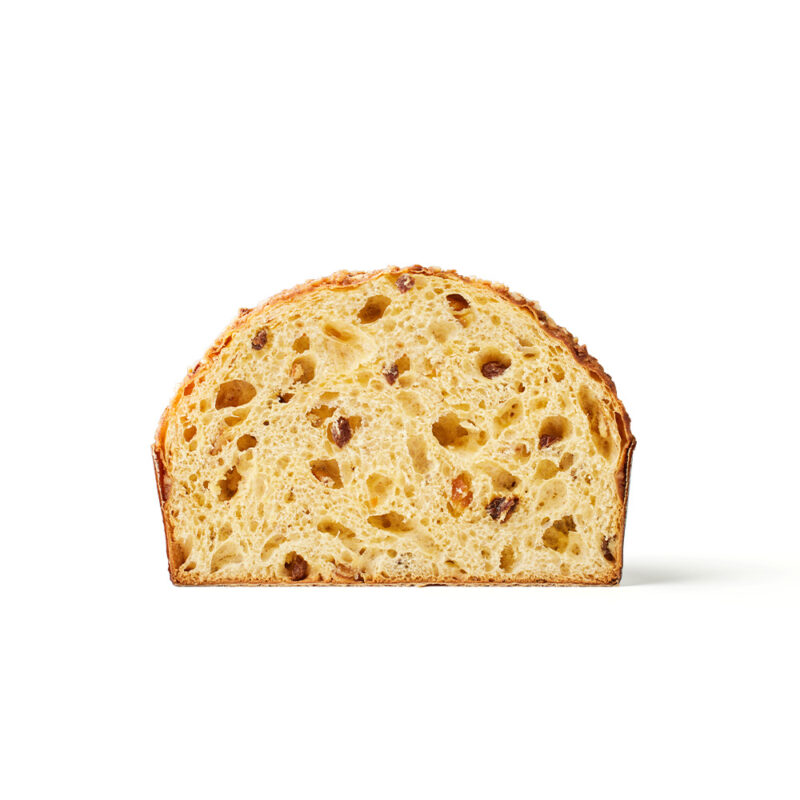 Para la variedad de frutas utilizamos pasas sultanas y naranjas de Castellón, confitando ligeramente su piel en azúcar de caña. De este modo el Panettone adquiere notas cítricas y ácidas muy agradables. Lo cubrimos con deliciosas almendras de Lérida.